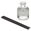 Объём диффузора 50 мл. Его будет достаточно для умеренного поддержания аромата в комнате до 15м2 в течение двух месяцев использования. Насыщенность аромата регулируется количеством используемых фибровых палочек.