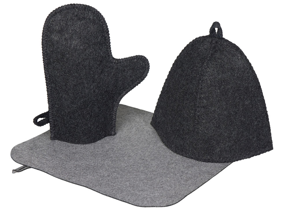Банный набор из шапки, рукавицы и коврика Calm, серый