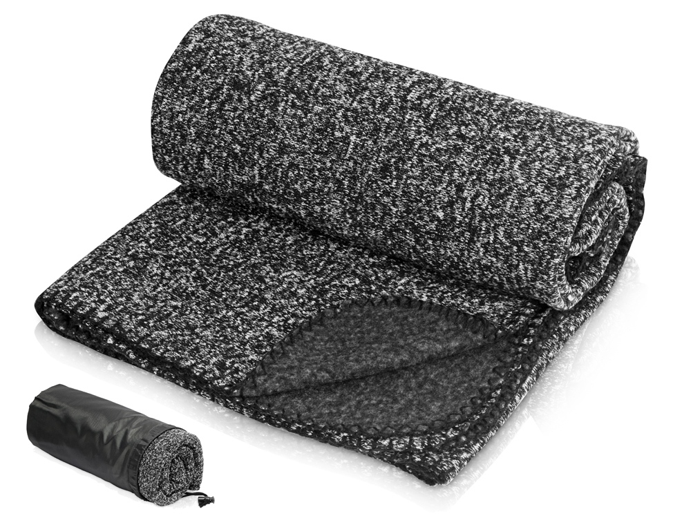 Теплый и плотный вязаный плед согреет в прохладный день. В комплекте черный мешок размером 325*130 мм на шнурке — удобно хранить и брать в дорогу.