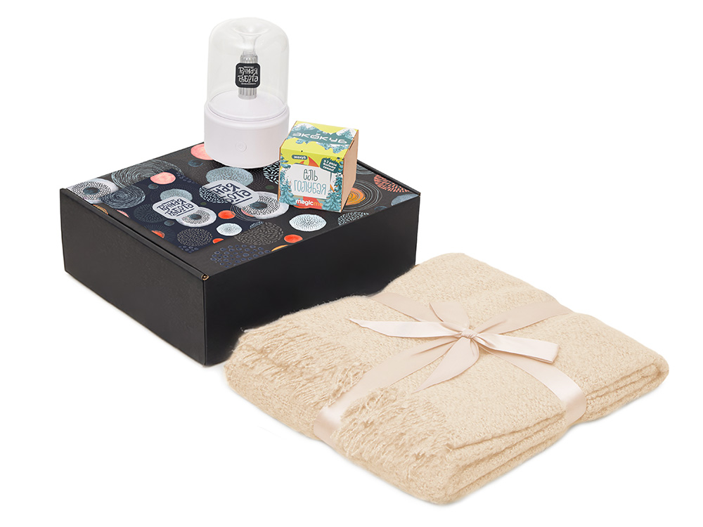 | Материал | плед — 100% акрил, увлажнитель-аромадиффузор — абс палстик, поликарбонат, набор для выращивания — дерево, мешок — нетканый материал (спанбонд), коробка — картон |