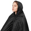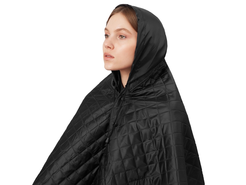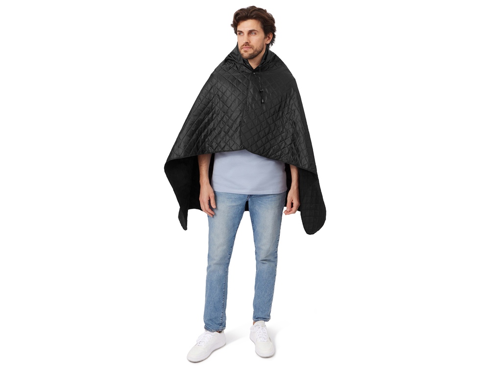 На внутренней стороне из флиса приятно и тепло сидеть, а наружная сторона из полиэстера с водоотталкивающим покрытием не позволяет пледу намокнуть или сильно испачкаться. Для больше удобства использования пледа во время дождя в комплекте идет капюшон, который фиксируется с помощью липучки. Накинув плед на плечи, застегните его на кнопки вверху и наденьте капюшон. Вы не промокните во время неожиданного дождя!