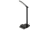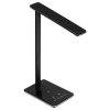 Умная функциональная настольная лампа с 3 режимами освещения: теплый желтый свет, нейтральный свет и холодный свет. Равномерно мягкий свет приятен и безопасен для глаз (отсутствует мерцание). На панели основания лампы можно также регулировать яркость и ставить таймер отключения (1 или 2 часа). В лампе предусмотрена беспроводная зарядка Qi-совместимы устройств, чтобы зарядить смартфон – просто разместите его в центре основания, и зарядка автоматически начнется. Выходной порт USB для проводной зарядки устройств. Благодаря продуманной конструкции лампа может принимать практически любые положения.
