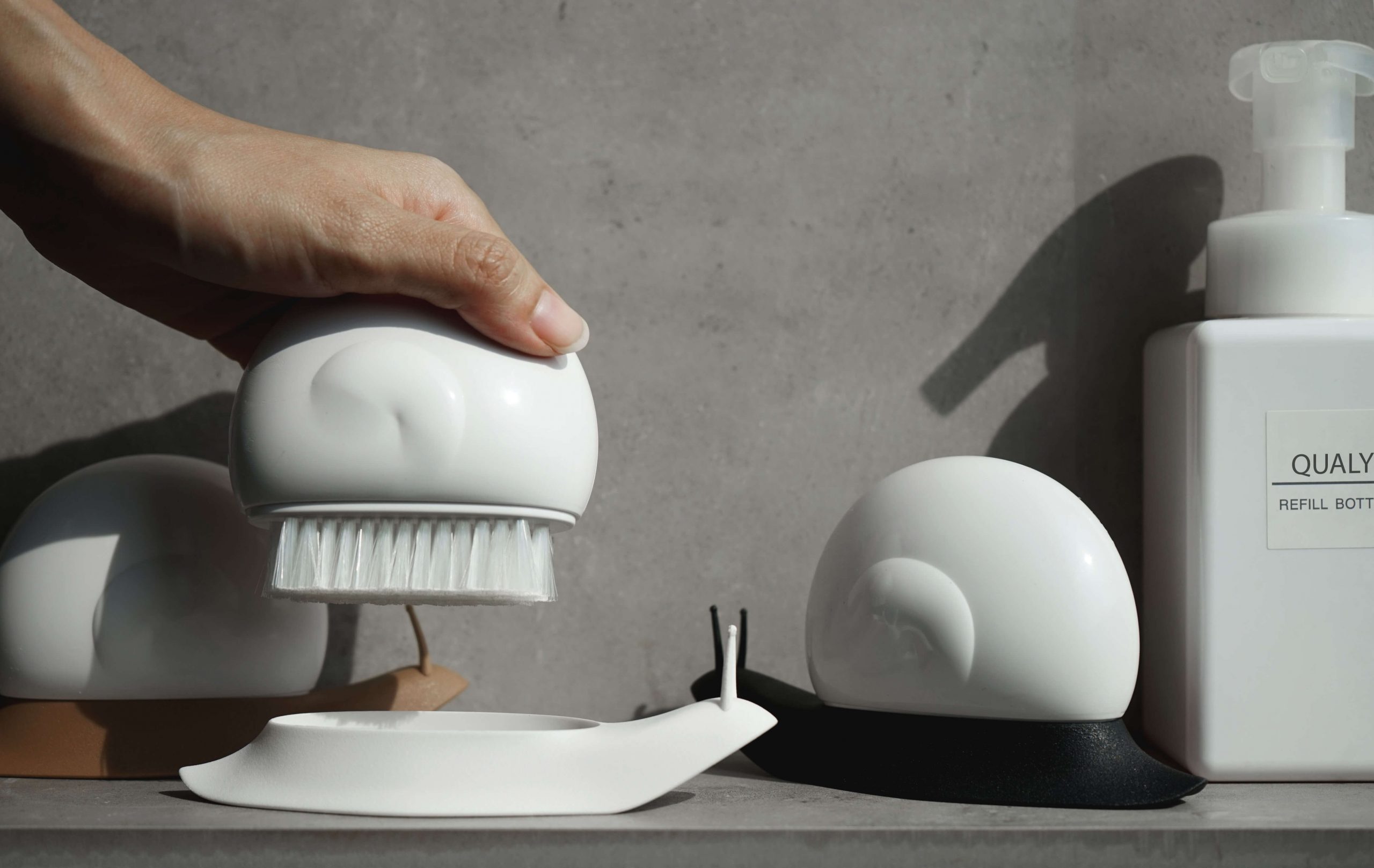 QUALY Eschi — ручная щетка. Пластиковая ручная щетка с подставкой. Размер: 13,7 х 5 х 7,2 см.
