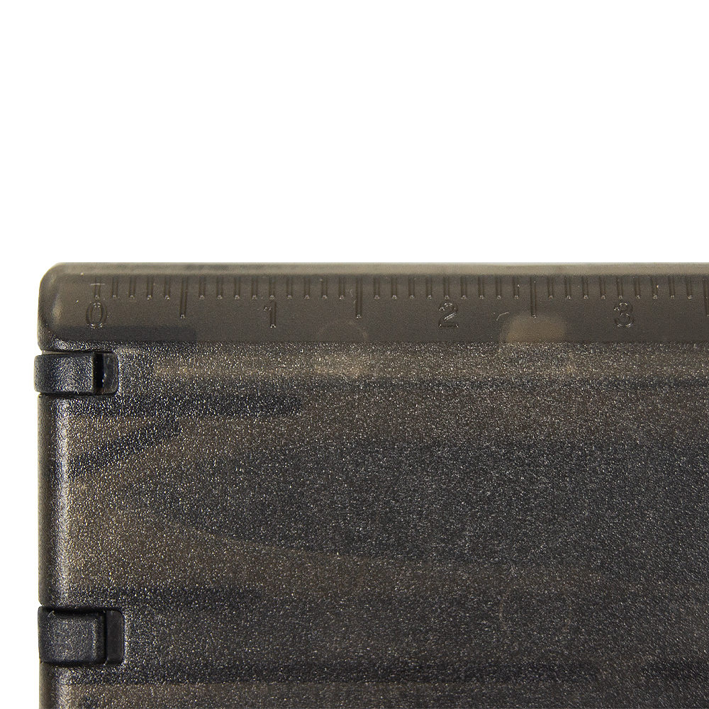 Корпус изготовлен из полупрозрачного черного пластика, а инструменты – из нержавеющей стали.