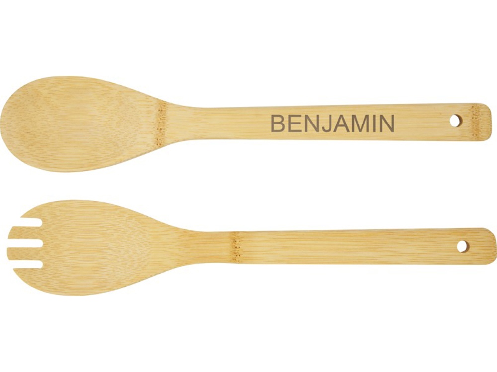 Бамбуковый салатный набор, состоящий из салатницы классической круглой формы, салатной ложки и вилки, удобных для повседневных семейных ужинов. Используемый бамбук поставляется и производится в соответствии со стандартами устойчивого развития.