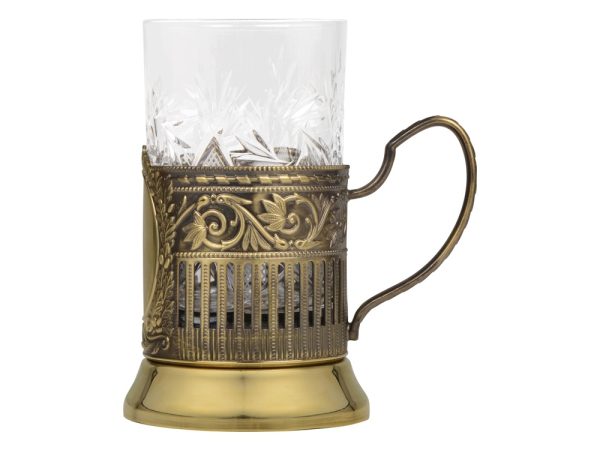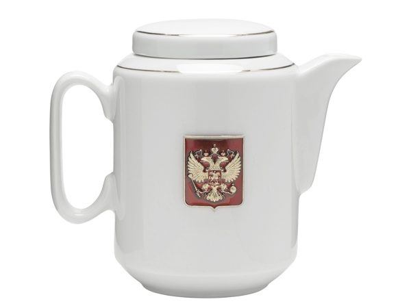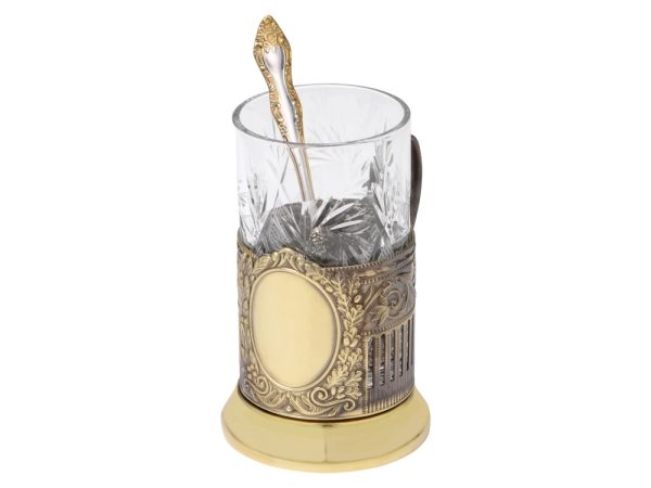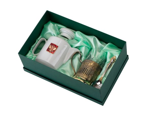 Чайный набор с подстаканником и фарфоровым чайником ЭГОИСТ-Л, золотистый/белый