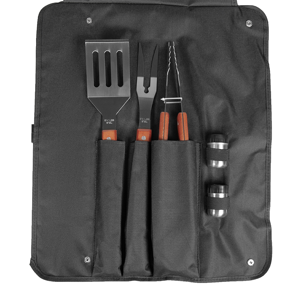 Инструменты выполнены из нержавеющей стали (марка 2cr13). Рукоятки выполнены из резинового дерева.