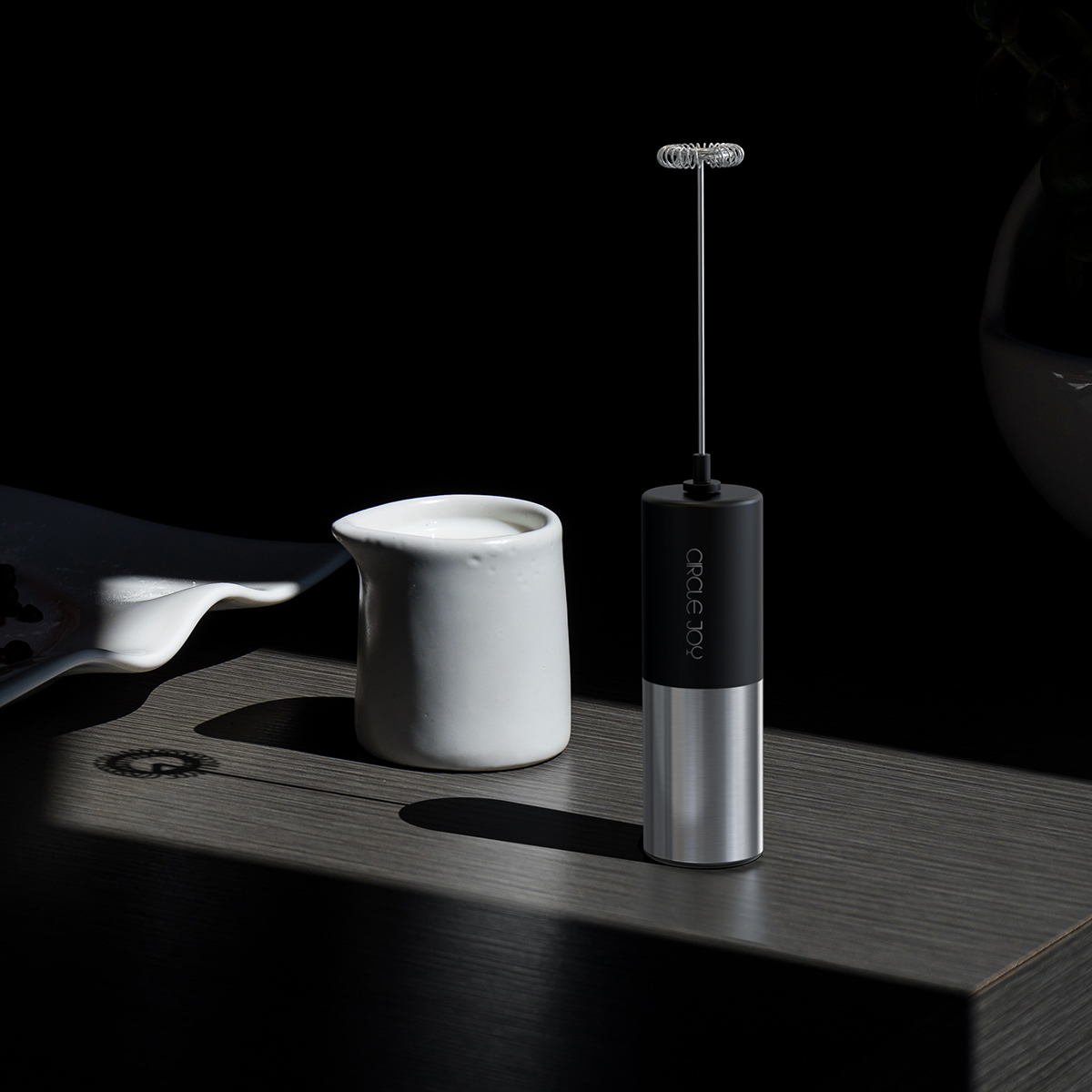 Электрический вспениватель молока эффективный, легкий и компактный, требуется всего одно нажатие для создания густой молочной пены. Энергоэффективный мотор 1 Вт, обеспечивает скорость вращения до 14 000 об/мин обеспечивает качественный и стабильный эффект перемешивания. Вспениватель ручной, сделан из премиум стали и пластика, одна часть из матового ABC пластика, вторая изготовлена из текстурированной стали. Два цвета, черный из матового пластика, и часть ослепительной стали создают эффектный дизайн ручного вспенивателя. Мощность мотора также позволяет взбивать и перемешивать яйца, жидкое тесто, детской питание и сухое молоко. Питание устройства осуществляется посредством двух батареек АА формата. Гаджет удобно мыть и чистить, достаточно поместить венчик устройства в емкость с чистой водой и включить его до полной очистки.