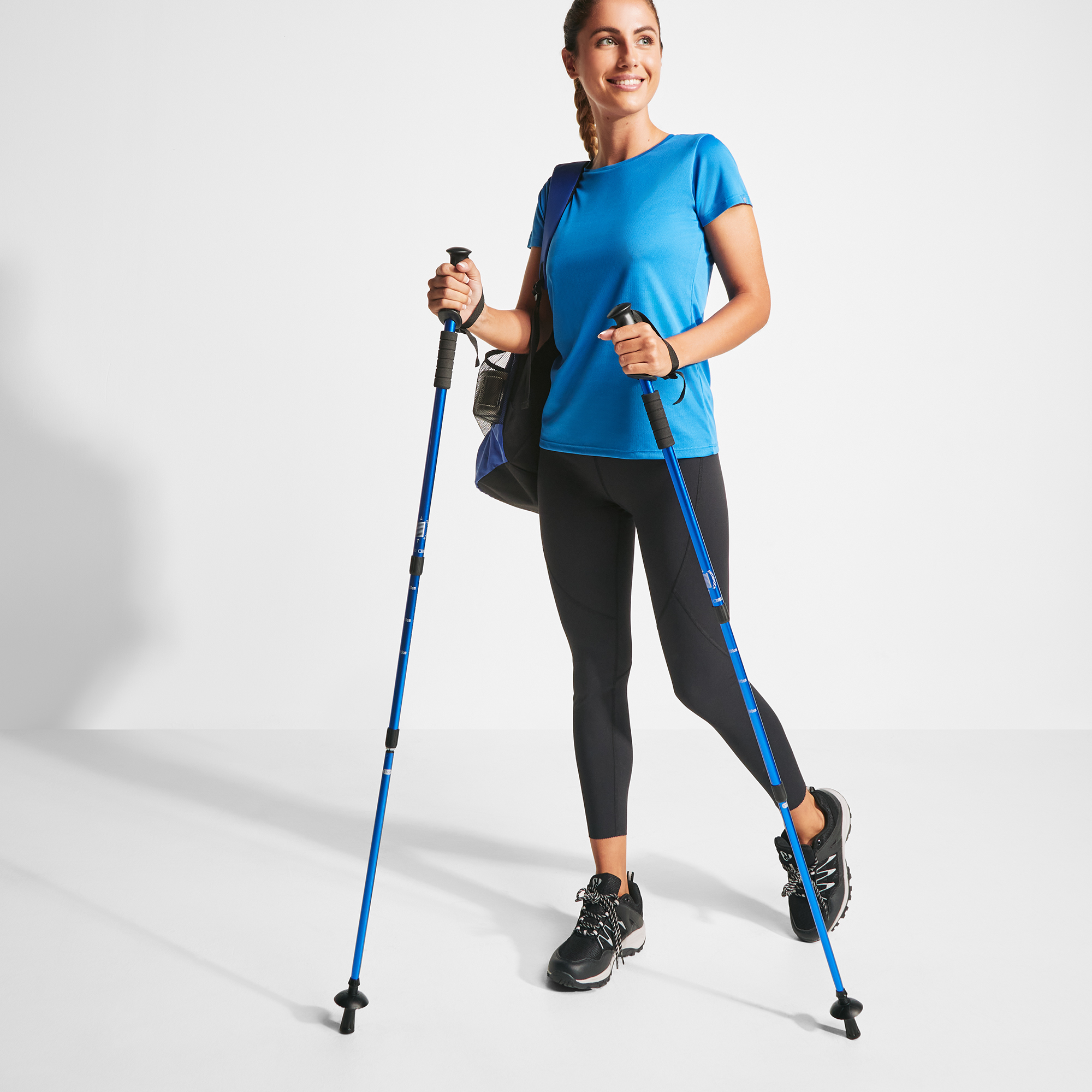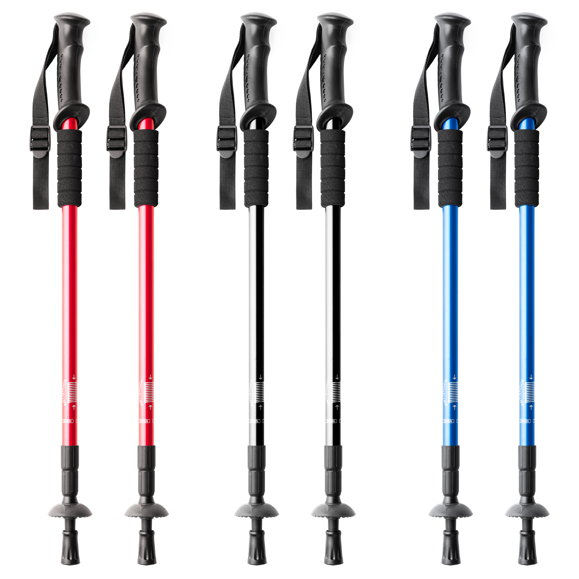 Складной набор треккинговых палок из алюминия с амортизацией. Эргономичная ручка и регулируемый ремень безопасности.
