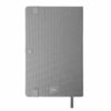 100% эко-блокнот Размер: 130х210 мм Переплет: твердый Обложка: RPET рециклированный полиэстер, полученный из переработанных пластиковых бутылок Материал сертифицирован в Нидерландах по Global Ecological Standard Отделка: жаккардовая резинка 12 мм и пенхолдер в тон обложки Форзац нахзац: кремовый Блок: недатированный Разлиновка: в линейку Количество страниц: 256 Углы блока: скругленные Цвет бумаги: кремовый Плотность бумаги: 70г м2 Ляссе: в тон обложке Карман для визиток: есть Упаковка: фирменный сливбокс thINKme