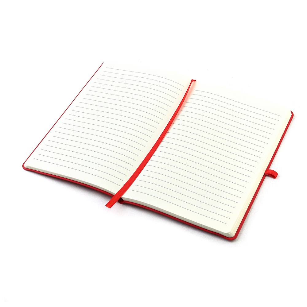 Блокнот формата А5 с мягким покрытием из PU-материала с имитацией рисунка кожи, с эластичной застежкой и текстильной закладкой, наличие петли для ручки в цвет блокнота, 192 страницы, плотность 70г/м, страницы с черными линиями. Цвет по PANTONE® (максимально приближен): 4154C.