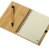 Набор с блокнотом и ручкой изготовлен из экологически чистых натуральных материалов. Обложка блокнота и корпус ручки из натурального бамбука, листы из переработанной бумаги.