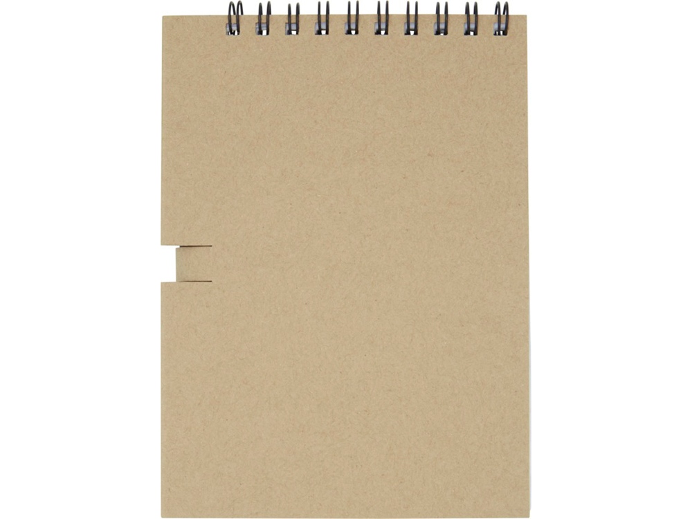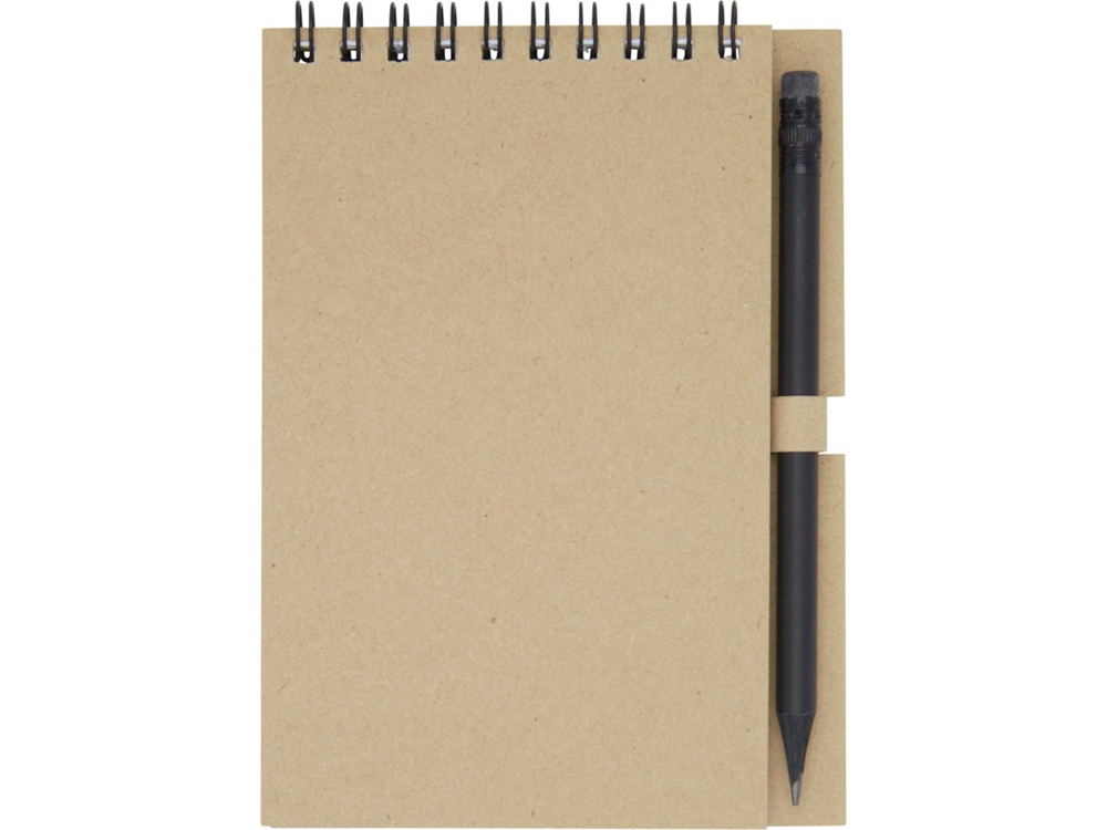 Блокнот на гребне из 40 листов плотностью 80 г/м², обложка и листы изготовлены из переработанной бумаги, соответствующей FSC, без декора. В комплект входит черный карандаш. Блокнот изготовлен в Италии.
