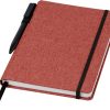 Блокнот формата А5 с отделкой из переработанного ПЭТ. Содержит 96 листов в линию плотностью 70 г/м², изготовленных из переработанной бумаги, с петлей для ручки и лентой-закладкой. В упаковке из картона.