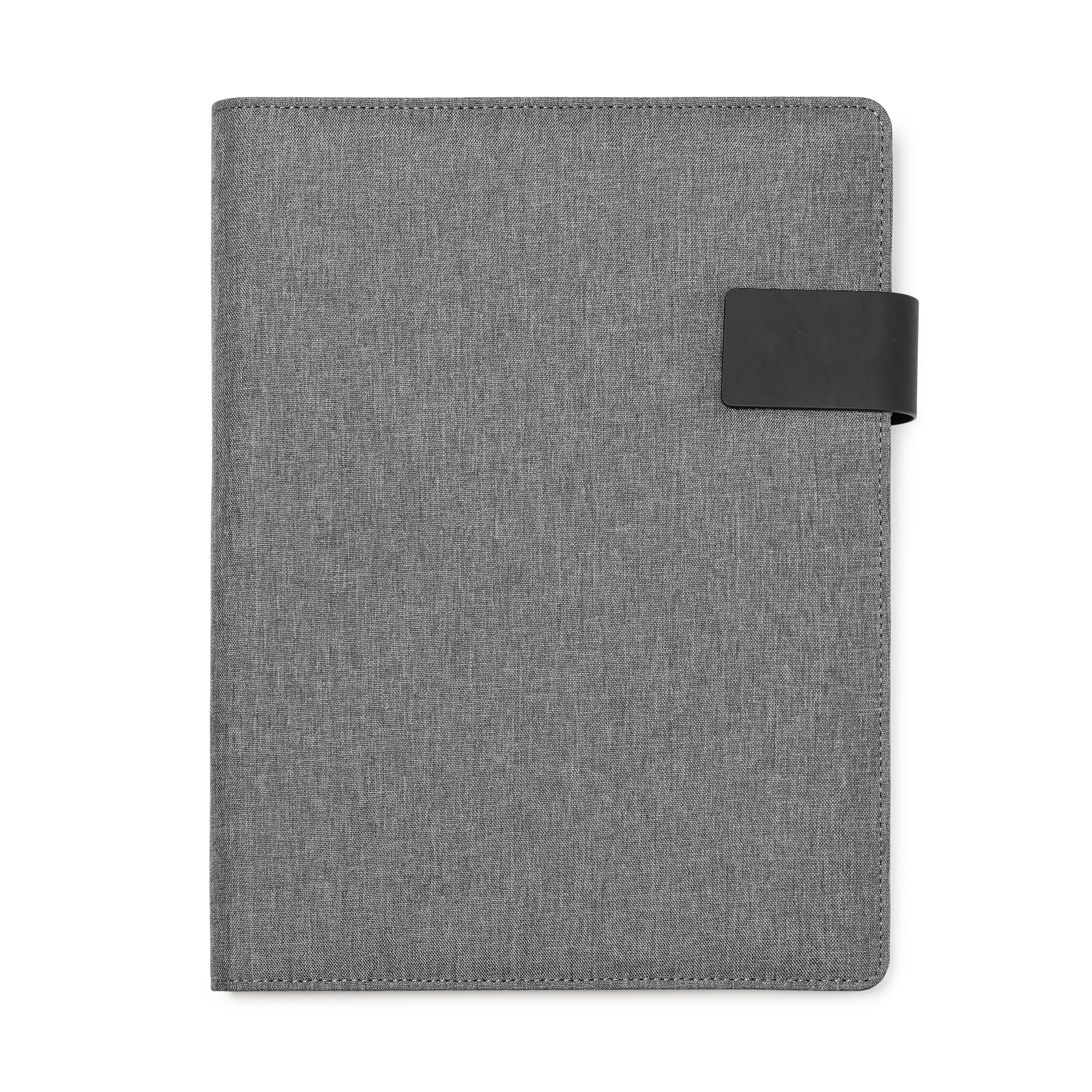 Универсальная папка А4 из вереска 600D RPET с магнитной застежкой. В комплект входит съемный блокнот на 30 листов с подкладкой. 4 внутренних кармана и держатель для ручек.