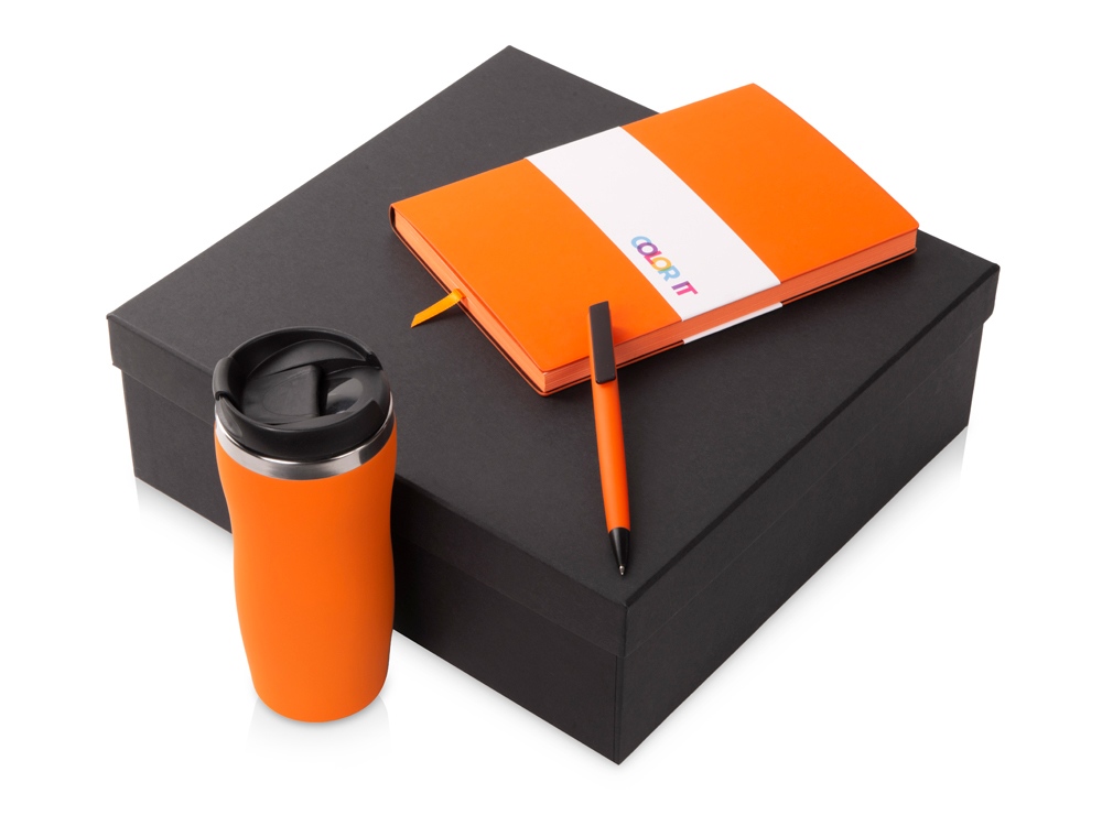 | Материал | блокнот — искусственная кожа с покрытием soft-touch, ручка — пластик с покрытием soft-touch, бутылка — нержавеющая cталь с покрытием soft-touch. |