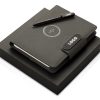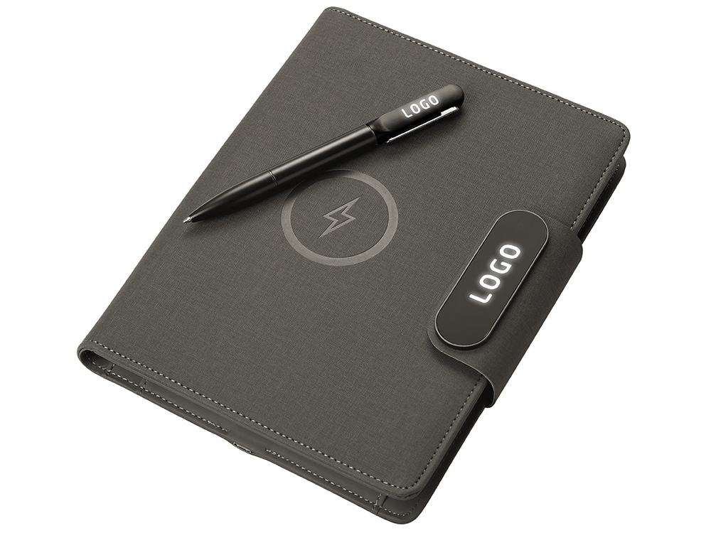 Подарочный набор Twilight — стильный и современный бизнес-подарок, который в полной мере воплощает идею многофункциональности. Он состоит из органайзера формата А5, с помощью которого можно заряжать гаджеты как беспроводным способом, так и через кабель, фиксировать телефон для просмотра видео или проведения конференций, хранить ручку и делать записи, а также самой металлической ручки. Клапан органайзера и в верхняя часть ручки светятся при гравировке логотипа, что делает набор стильным, а лого более ярким и заметным. Практичный и технологичный аксессуар, который в состоянии заменить сразу несколько вещей.