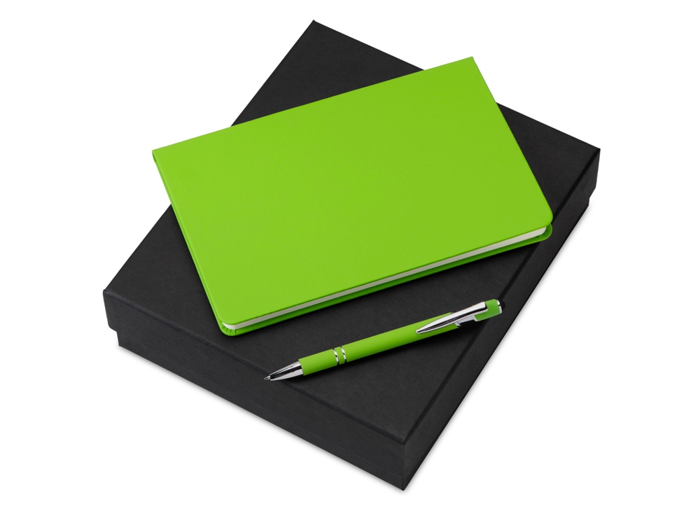 | Материал | ручка — металл c покрытием soft-touch, блокнот — искусственная кожа, коробка — кашированный картон |