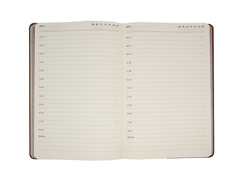 • Страницы матовые, со скругленными уголками, бежевого цвета. Плотность бумаги 80 гр/м2.
