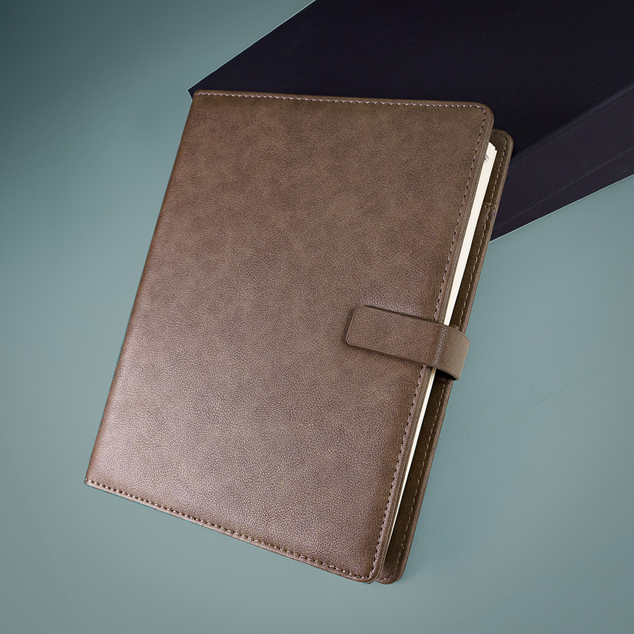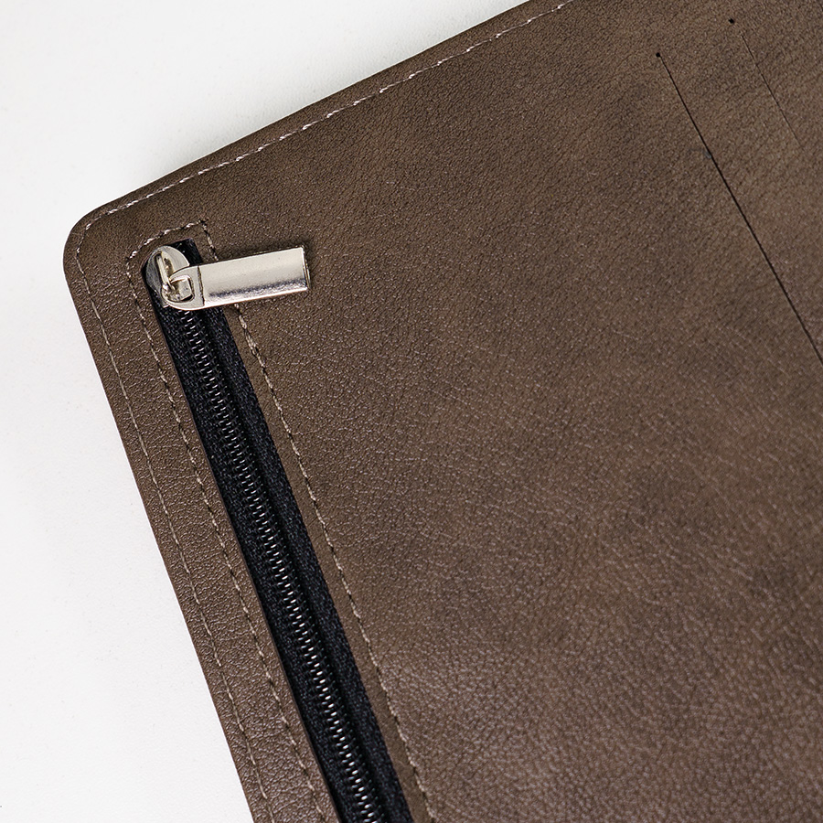 Цвет обложки, близкий к пантону 411С Размер обложки 165*225 мм Размер блока 155*215 мм Переплет твердый, крепление на кольцах Обложка PU Pinto с магнитным клапаном Блок недатированный, в линейку Прямые углы, двухкрасочная печать Бумага кремовая, плотность 70г м2 320 страниц, пенхолдер Карманы для карт, отделение на молнии