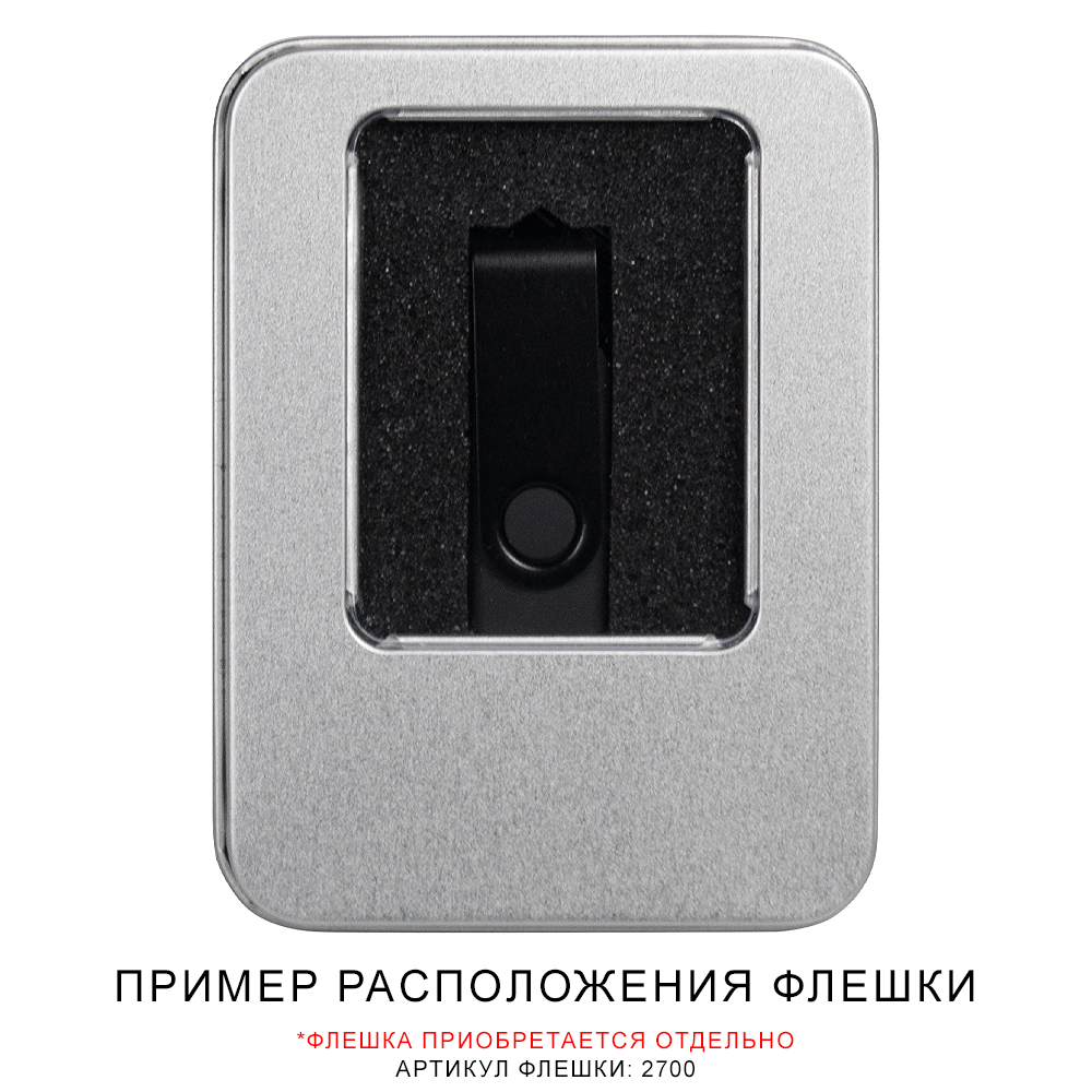 Футляр Twister для флеш накопителя металлический, размер 11,5*8,5 см, серебристый