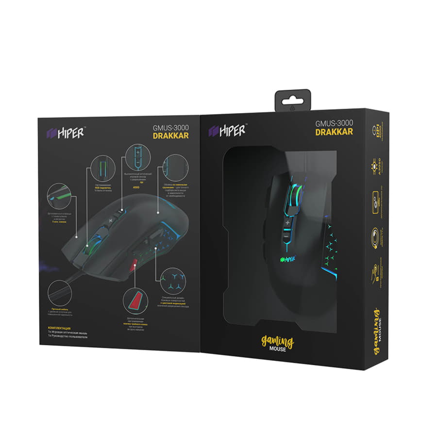 Оптический сенсор Avago A30504000 dpi макс разрешение8 программируемых кнопокМикропереключатели Huano (ресурс 5млн нажатий)Система регулировки и подбора весаПодсветка: 4 режимаПодключение: проводное, 1.5м с защитной оплеткой Материал корпуса SoftTouch Разрешение сенсора, макс 4000 dpi Количество клавиш кнопок 8 Дополнительные кнопки боковые, fire Программируемые кнопки да Тип сенсора оптический светодиодный Частота опроса 1000 Гц Тип подключения проводная Интерфейс подключения USB Подсветка есть Длина кабеля, м 1.5 м Дизайн корпуса для правой руки Система регулировки веса есть Вес, кг 0.130 Цвет Черный