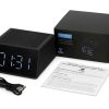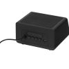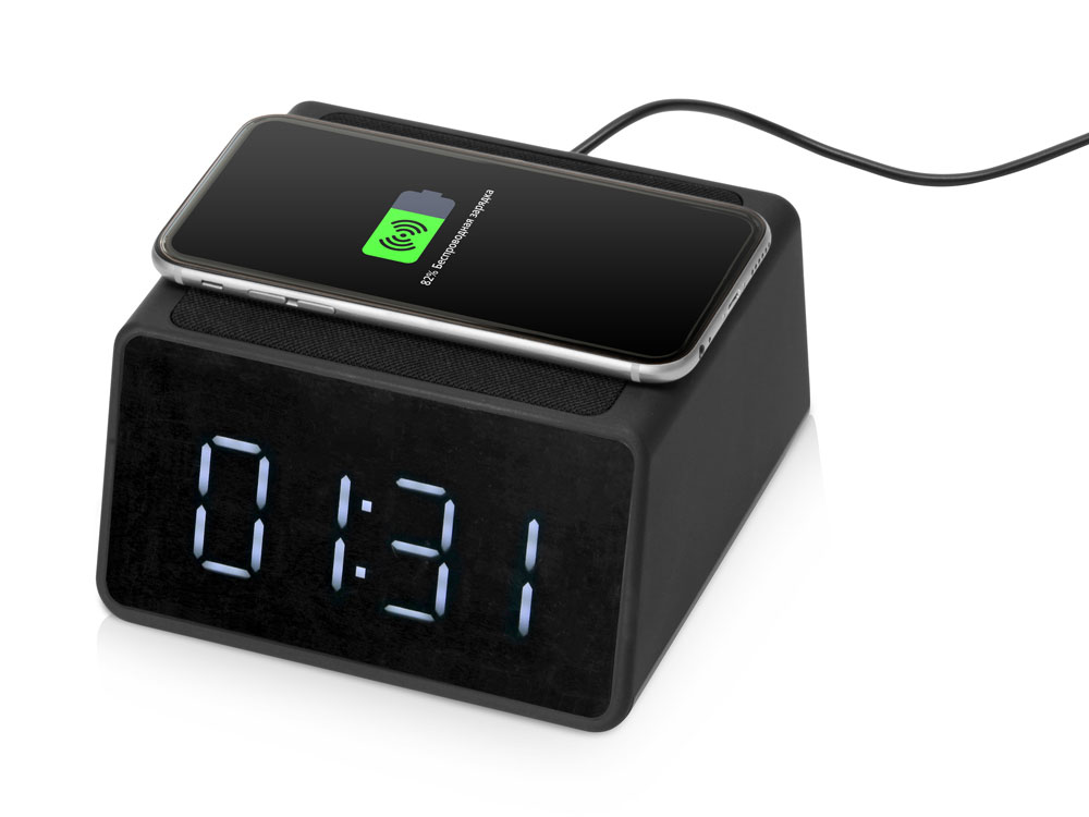 Беспроводная колонка с часами и функцией беспроводной зарядки Sentry от Evolt. Устройство может работать автономно, что позволяет использовать его в любой точке квартиры и за ее пределами и избавиться от проводов на рабочем столе. Колонка подключается к смартфону при помощи Bluetooth, имеет большой динамик, занимающий собой всю нижнюю панель Sentry.