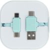 Кабель для зарядки 4-в-1 двух типов C: 1 USB типа A и 2-в-1 двухконтактных наконечников для устройств Apple iOS и Android. Используются как зарядка, так и передача данных. Чтобы зарядить устройства Apple, поместите кабель стороной, у которой нет контактов в устройстве, чтобы зарядить устройства Android, поместите кабель со стороны, в которой есть контакты в устройстве.