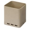 Настольный органайзер Cubic из пшеничного волокна с функцией беспроводной зарядки и выходами USB