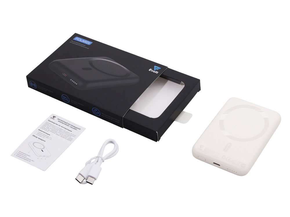 Магнитный внешний беспроводной аккумулятор Polarix, QC/PD, 10000 мАч, слоновая кость