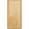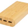 Портативное зарядное устройство емкостью 20 000 мАч из бамбука с сенсорной кнопкой включения/выключения и 4 светодиодными индикаторами для отображения оставшейся емкости батареи. Вход Micro USB 5 В/2 А, вход Type-C 5 В/3 А, выход Type-C 5 В/3.1 А макс., двойной выход USB-A 5 В/3.1 А макс., общая мощность 15.5 Вт. Поставляется с зарядным кабелем Type-C — Type-C 3 А из термополиэтилена длиной 30 см, инструкцией по эксплуатации и подарочной коробкой из крафт-бумаги. Поскольку бамбук — природный материал, цвет и размер сырья могут быть разными, что, в свою очередь, может повлиять на итоговый вид печати.