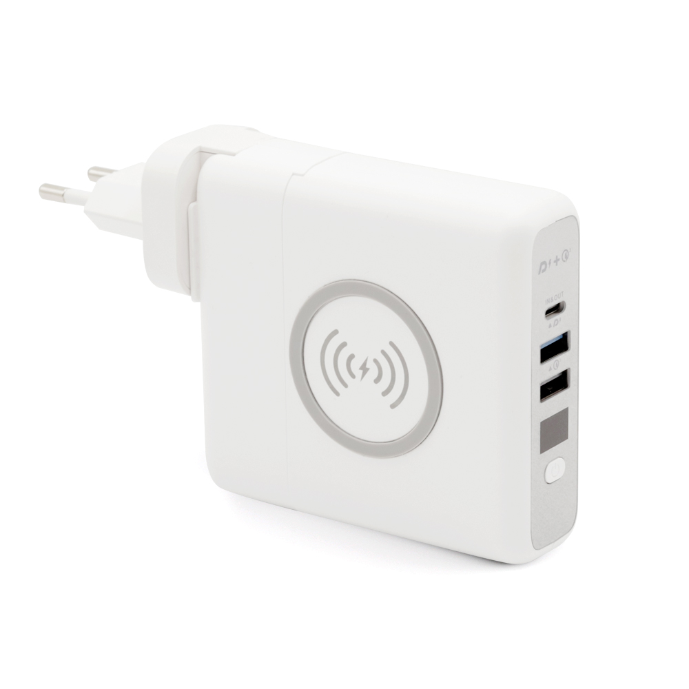 Внешний аккумулятор Gemini с беспроводной зарядкой и сетевым адаптером уникальное сочетание прагматичности, инновационности и комфортности! Устройство названо в честь пилотируемого космического корабля потому что количество возможностей поражает как космос! В своем арсенале небольшой и легкий аккумулятор имеет корпус из невоспламеняющегося пластика(Class 0), входной порт Type-C, два выхода USB для ускоренной зарядки, работающих в мульти протоколе PD/QC 3.0 с автоматическим определением подключения, и PD20 3A Type-C для зарядки устройств типа нетбук, ноутбук. Собственную съемную вилку AC 100-220V/50-60Hz/0.3A для подключения на прямую в общую электросеть без кабеля USB. Беспроводной модуль для зарядки устройств поддерживающих мощность в диапазоне 5W, 7.5W, 10W, 15W. Удобный цифровой экран в торце устройства всегда уведомит об уровне энергоемкости. Но и это не все! Gemini — это переводится как "близнецы", а это значит что устройство имеет Split Design — превращается в два независимых устройства.