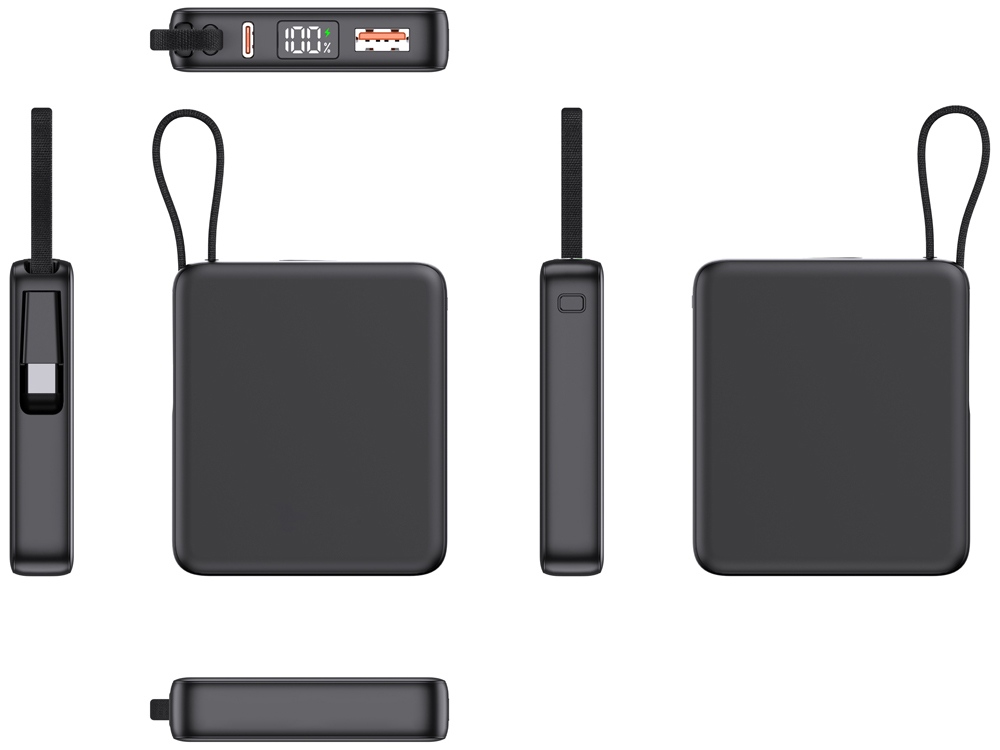 — Встроенный кабель Type-C и он же петелька для переноски: Современный стандарт Type-C, подходящий для зарядки всех последних популярных смартфонов, включая iPhone. Кабель также выполняет роль удобной петельки