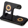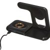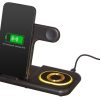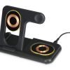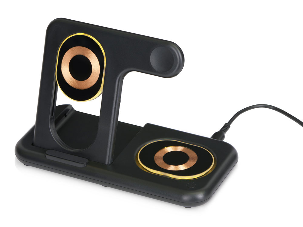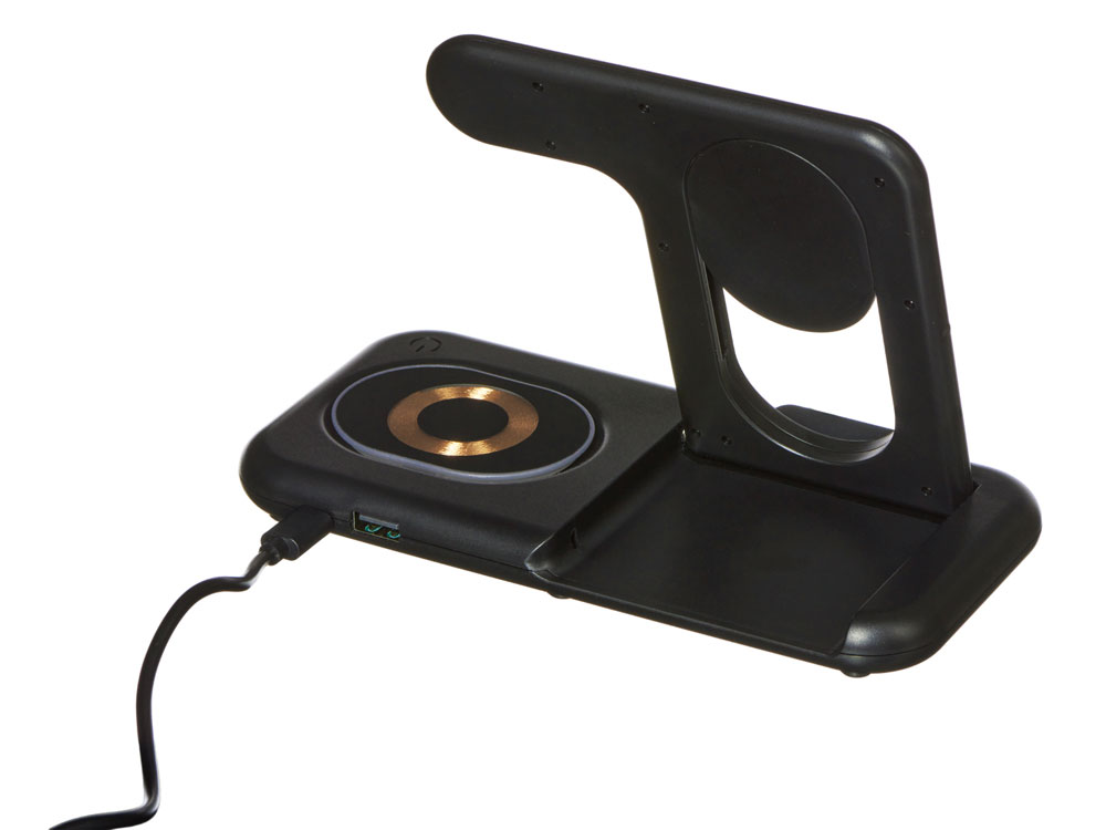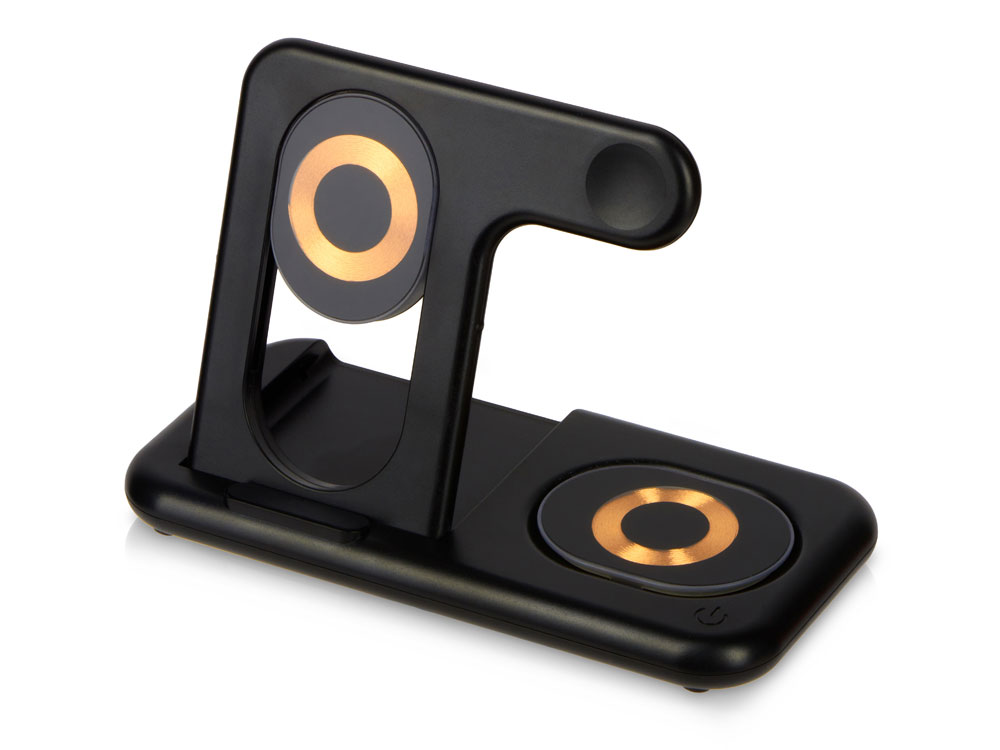 Беспроводная зарядная станция на 3 устройства MajestiQ с прогрессивным дизайном: модуль беспроводной зарядки в вертикальном сегменте станции может менять свое положение по принципу слайдера. Это позволяет настроить положение под размер любого смартфон, не снимая чехла. На станции можно заряжать три беспроводных устройства одновременно: смарт-часы Apple, смартфон и беспроводные наушники. Вместо наушников можно расположить для зарядки второй смартфон. MajestiQ поддерживает быструю беспроводную зарядку 15 Вт. * В зарядные модули встроена атмосферная подсветка с тремя уровнями яркости. Поставляется в сложенном виде, угол наклона можно выставить практически любой.