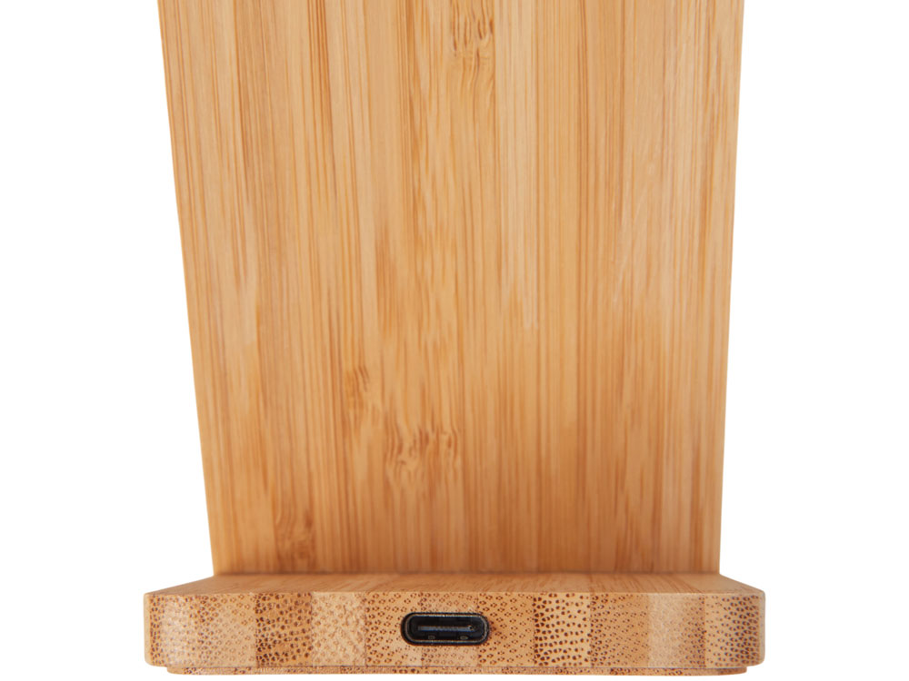 Знакомьтесь с инновационным беспроводным зарядным устройством на 15 Вт — созданным для комфорта, стиля и экологичного образа жизни. Его корпус сочетает натуральный бамбук и переработанный ABS-пластик, даря не только приятную на ощупь текстуру, но и выражая вашу заботу об окружающей среде. Уникальная конструкция с двумя центрами зарядки позволяет заряжать смартфон как в вертикальном, так и в горизонтальном положении — идеально для просмотра видео, видеозвонков или навигации во время зарядки. А встроенная белая подсветка с возможностью нанесения логотипа превращает зарядку в персонализированный аксессуар: ваш бренд или имя мягко светится, добавляя атмосферу уюта и премиальности.