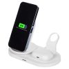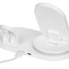 Flashport от Evolt — это складная зарядная станция с беспроводной зарядкой для телефона и наушников. В комплекте также идет подставка под зарядку для наручных смарт-часов. На регулируемой панели зарядки смартфона расположены 2 катушки (2 центра беспроводной зарядки), которые позволяют заряжать ваш девайс как в вертикальном, так и горизонтальном положении. Беспроводная зарядка для наушников мощностью 5 Вт подходит для зарядки не только беспроводных наушников, но и второго смартфона. Чтобы включить встроенную лампу, нажмите сенсорную кнопку 1 раз. Для плавного изменения яркости света нажмите и удерживайте сенсорную кнопку при включенной лампе. Кабель 100 см в комплекте.