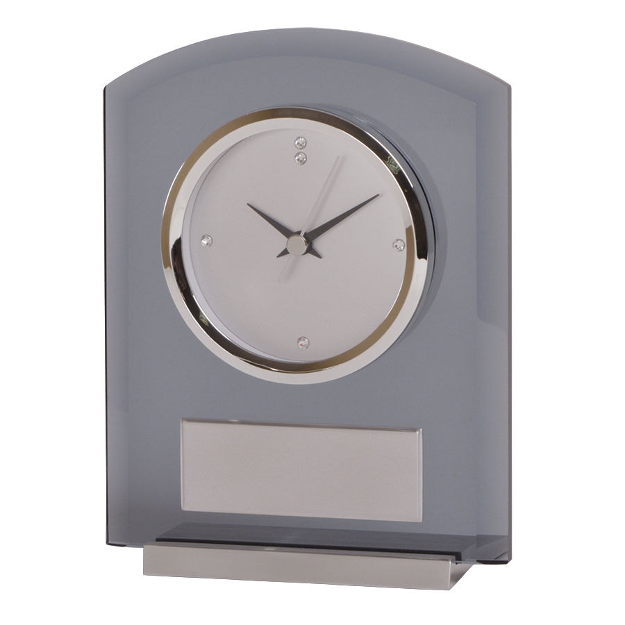 Часы настольные "AWARD" Плавный бесшумный механизм. Кристаллы на циферблате. Элементы питания- батарейка типа АА-1шт (в комплект не входят)размер: 13.7 x 4.8 x 17.9 см, шильд 6х3,4 смматериал: стекло, алюминий