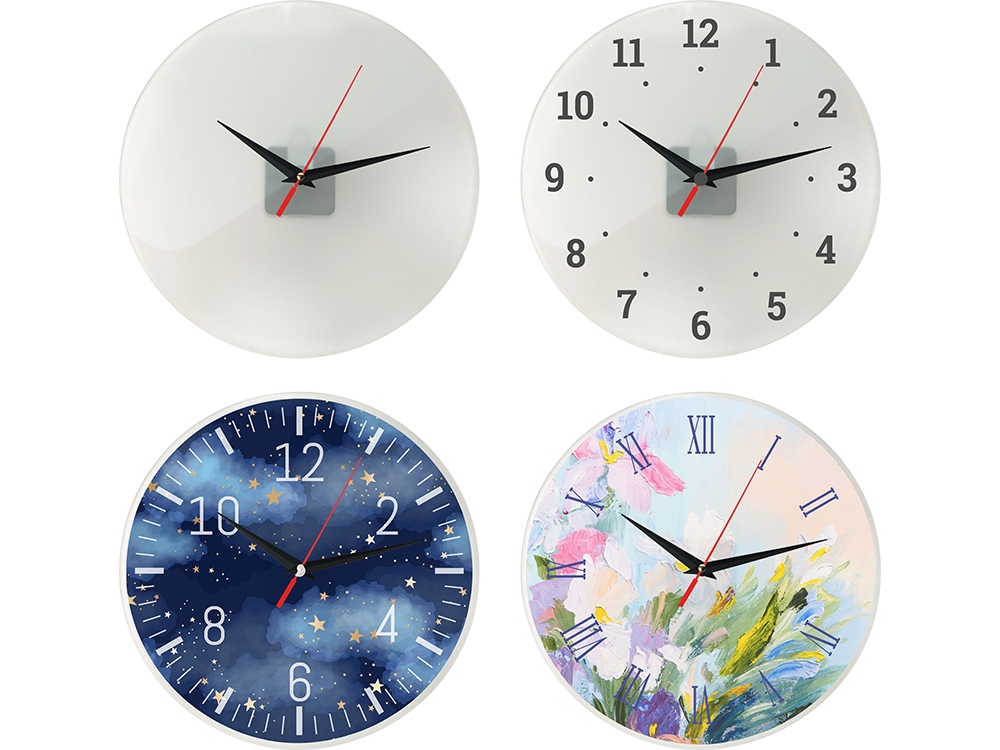 Часы предназначены для нанесения циферблата на стекло по индивидуальному дизайну с помощью технологии цифрового термотрансфера: на оборотную сторону циферблата заводским способом нанесена специальная пленка. Изображение печатают на обычной глянцевой бумаге, а затем закрепляют на циферблате термопрессом — пленка плавится, и бумага с печатью плотно припаивается к стеклу.