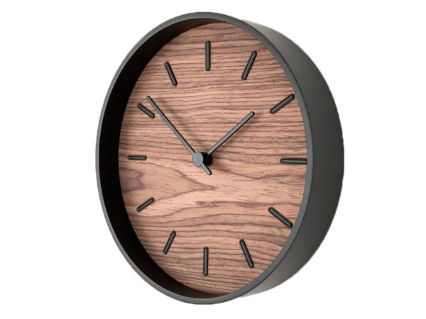 Beam — это современные настенные часы из натурального шпона с часовыми метками в черном цвете. Данную модель отличает стильный total black в деревянном исполнении: черный циферблат сделан из шпона венге и дополнен черными деталями: обод, стрелки и часовые метки.