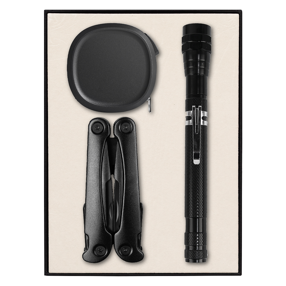 Набор подарочный Solution Superior Trio (Фонарь телескопический Tools Flashlight, рулетка Tools Trecker 3 метра, мультитул Tools Birmingham), черный