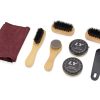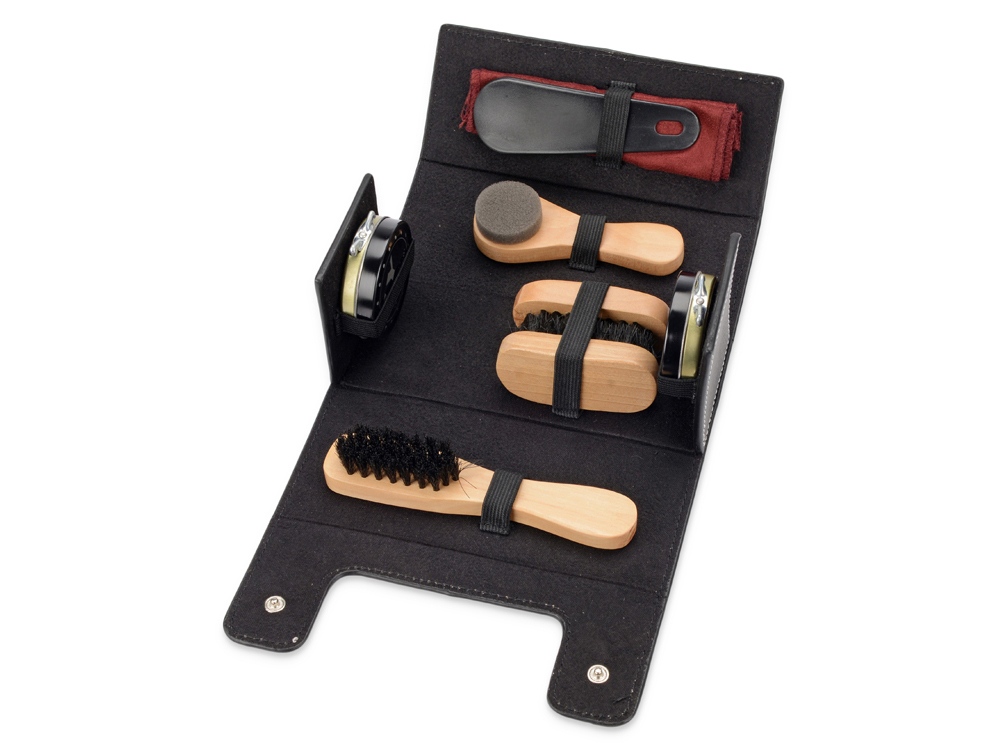 Практичный и удобный набор аксессуаров для чистки обуви. Прочный чехол в виде сундучка из кожзаменителя поможет компактно сложить все аксессуары. Набор для обуви можно взять с собой в путешествие, командировку.
