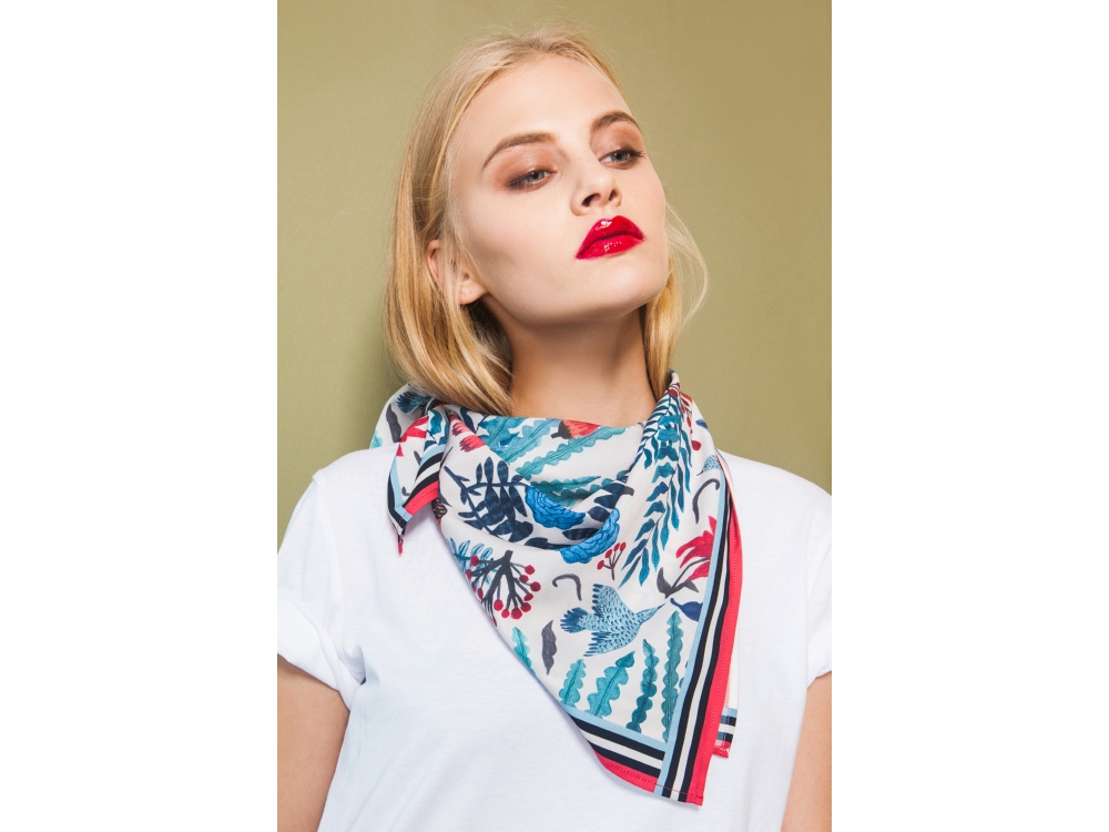 Платок из искусственного шелка саржевого плетения (твил) размером 70*70 см., с авторским принтом Голубые розы.
