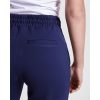 Женские брюки из эластичной ткани. · Эластичный пояс на кулиске сзади. · Складки спереди. · Два передних кармана. · Два задних кармана на пуговицах.