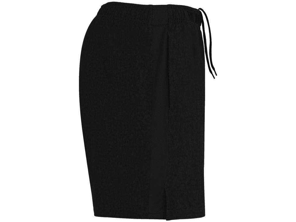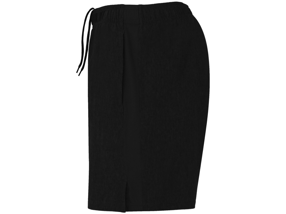 Спортивные шорты из двух видов полотен с подкладкой — трусами. Эластичный пояс с контрастным внутренним шнурком. Лампасы по бокам из дышащей ткани. Два карманы по бокам. Асимметричные боковые разрезы внизу.