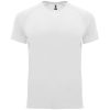 Спортивная футболка с коротким рукавом реглан. Круглый вырез горловины с отделкой плоским швом. Рукав сложного кроя для обеспечения дополнительного удобства при занятиях спортом. Отделка плоским швом с застилом по пройме и рукавам.