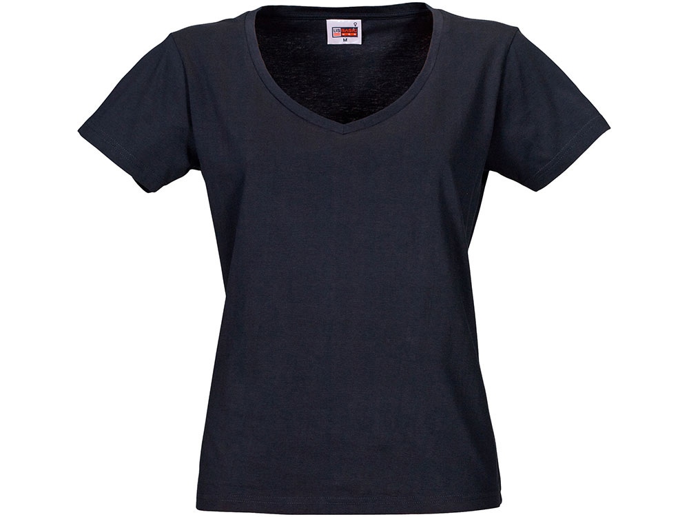 Женская футболка из натурального хлопка с элегантным V-образным вырезом. Материал отлично подходит для нанесения рекламной информации. Натуральная ткань не вызывает раздражения кожи.