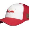 Коробка с образцами 4 бейсболок разных стилей: 1 Boston бейсболка из переработанного хлопка с 5 панелями, 1 Houston бейсболка из переработанного хлопка с 6 панелями, 1 Arizona бейсболка из переработанного хлопка с 5 панелями и многослойным козырьком и 1 Richmond Aware™ бейсболка из переработанного хлопка с 6 панелями и многослойным козырьком. Картон.