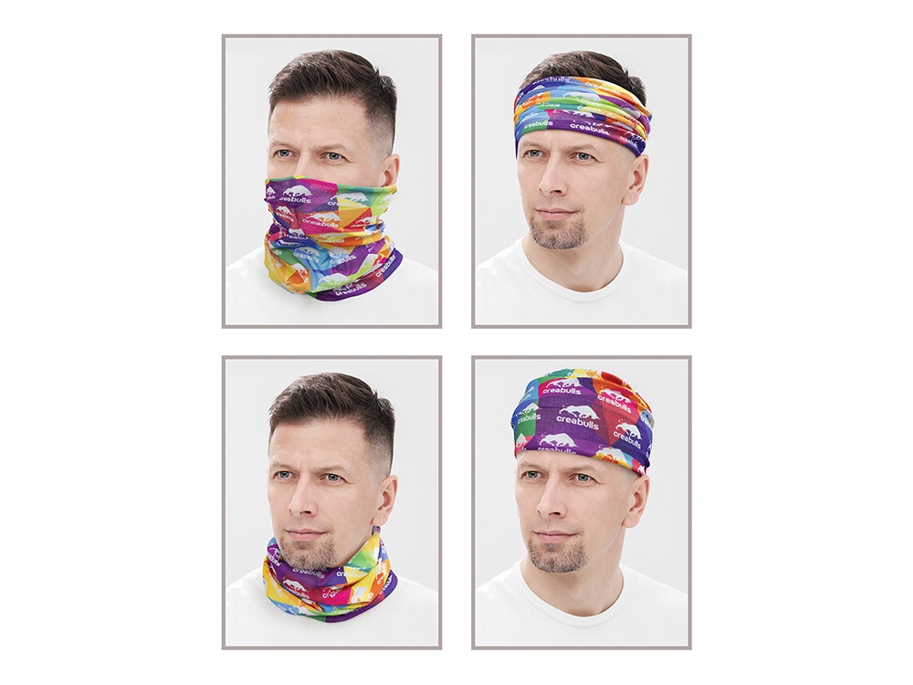 Универсальная многофункциональная бандана — стильный аксессуар для спорта и путешествий. Высококачественное микроволкно прекрасно отводит влагу от тела, позволяя коже дышать в жаркую погоду или при высоких физических нагрузках. Бандана подходит для экстремальных видов спорта благодаря ветроустойчивому материалу, и защищает от солнца, ветра и пыли. Брендирование производится полноцветной печатью в край с обеих сторон. На поверхности можно разместить лого компании или фестиваля, а также полноразмерный принт любой сложности. Можно стирать в стиральной машине.