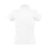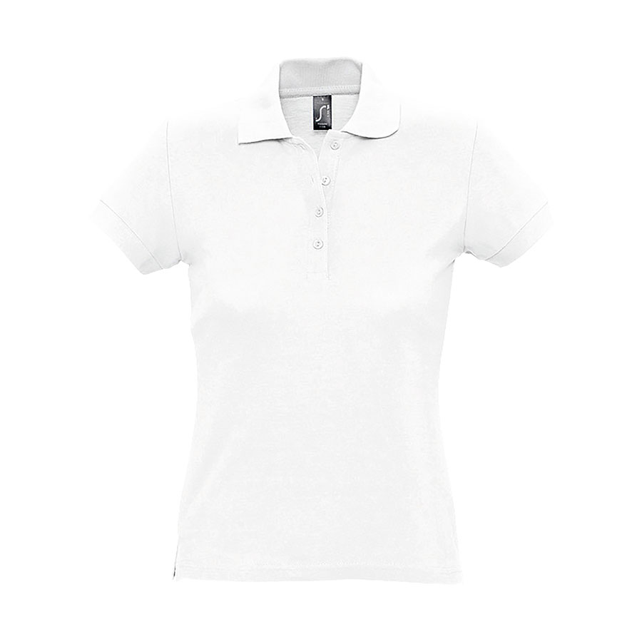 Приталенное женское поло.Прямой низ, боковые разрезы. Рукав короткий.Воротник и манжеты из эластичной резинки-рибаны.Ворот укреплен тесьмой.4 пуговицы в тон изделия на планке.Запасная пуговица на внутреннем боковом шве.Цвет близкий к PANTONE 426C