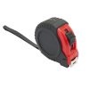 5-метровая рулетка с фиксирующим механизмом. Цветной прорезиненный корпус с резиновым чехлом, металлический зажим и ремешок для переноски.